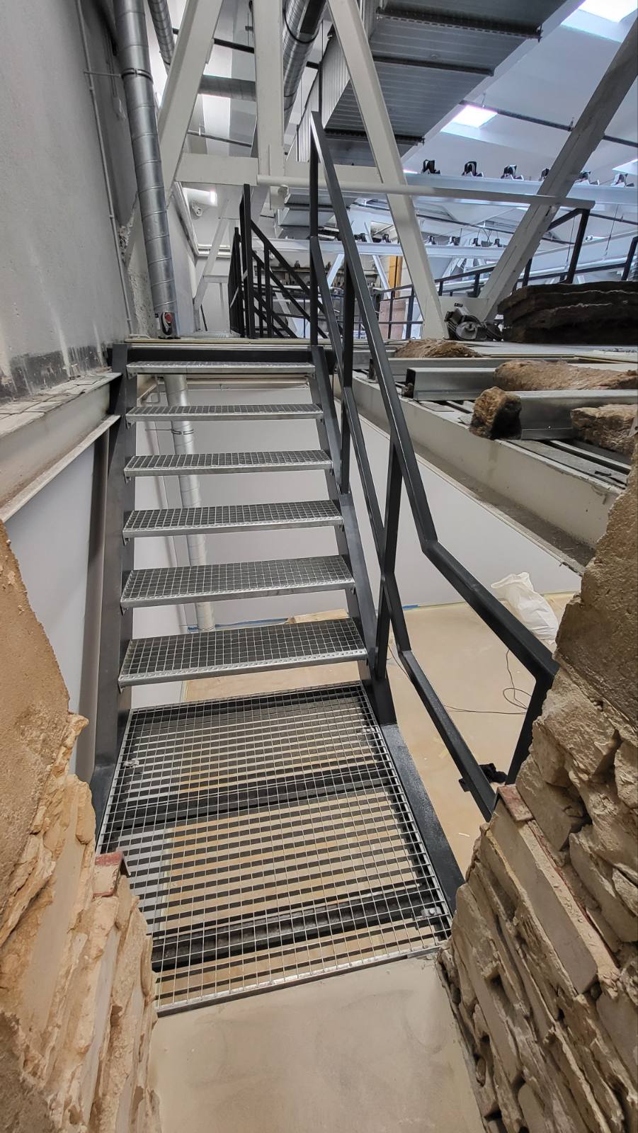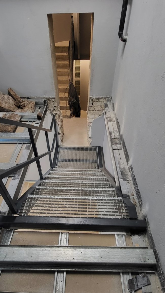 Metal stair steps. This type of staircase is often used in industrial and administrative buildings.