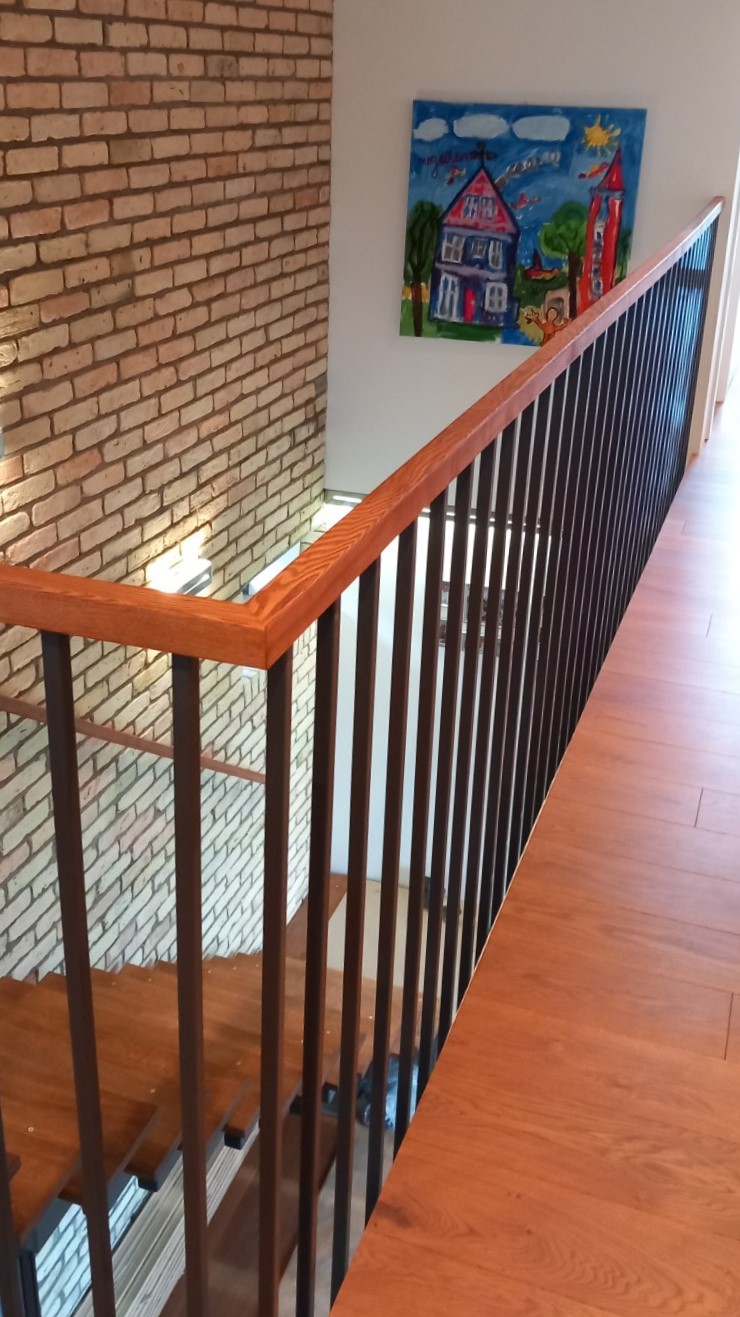 Solid ash armrest on the wall. The comfortable height of the armrest against the wall is 900 mm. For this project, we have proposed a square wooden profile 43×43 mm.
