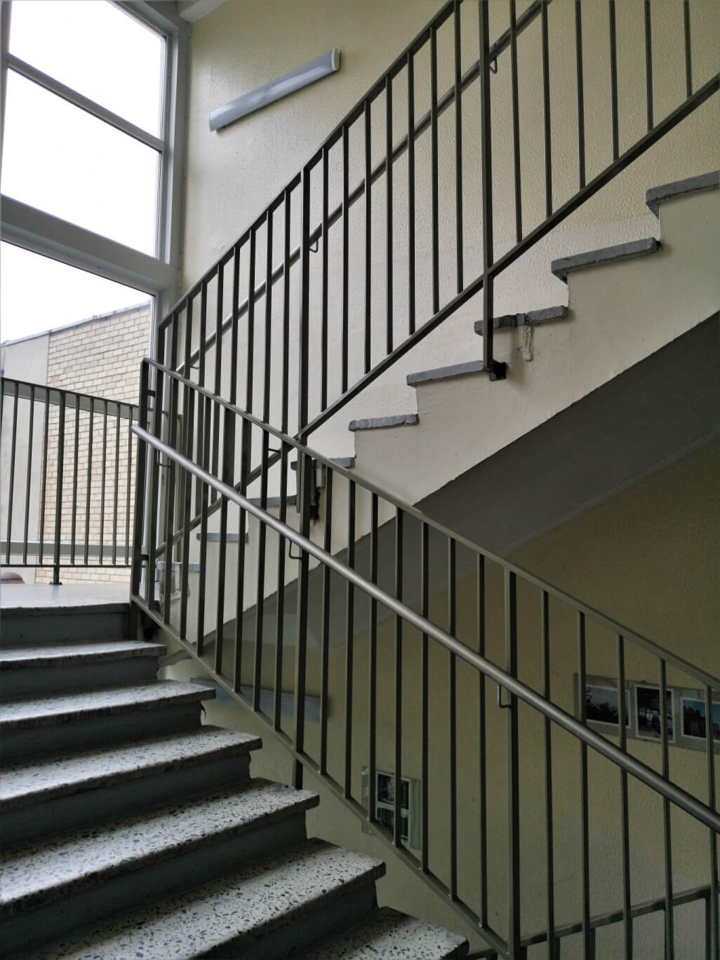 Standard school railings. Construction height H1200 mm, we proposed to make the armrest at a comfortable height of H900 mm.