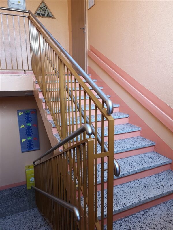 Kindergarten handrail with double armrest. For ease of use, we have made the handrails in different heights so that children up to school age and parents/teachers can use them easily.