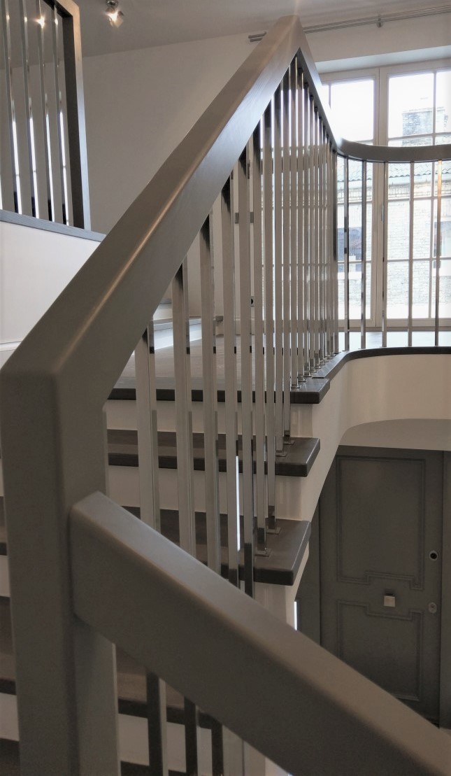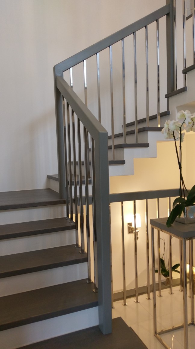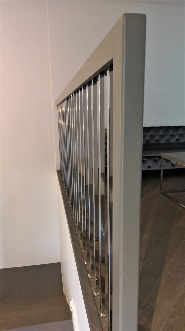 Stainless steel internal handrails with mirror polishing. The distinctive feature of these handrails is the polishing of the tubes. A decorative detail at the bottom of each tube. The colour of the handrail is matched to the colour of the cabinets.
