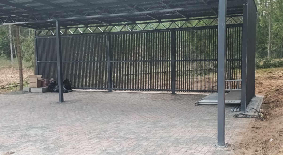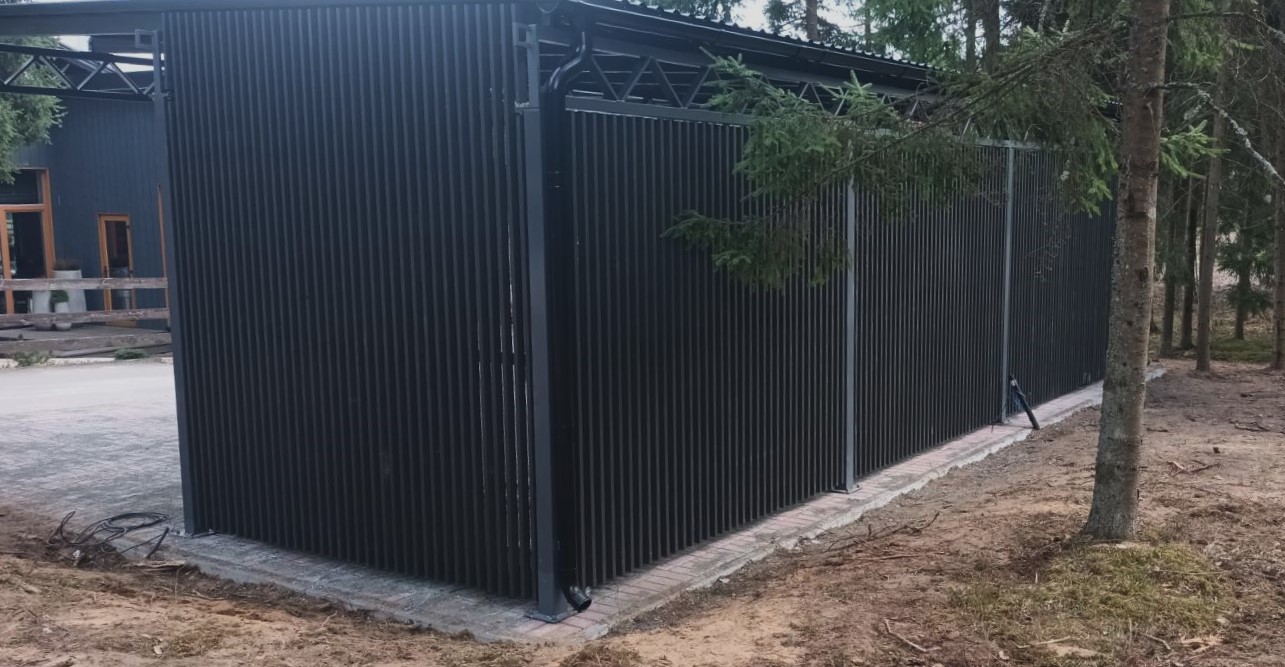 Metal carport with WPC composite panels. Our WPC composite panels are screwed to the sides of the structure and are moisture resistant and durable.