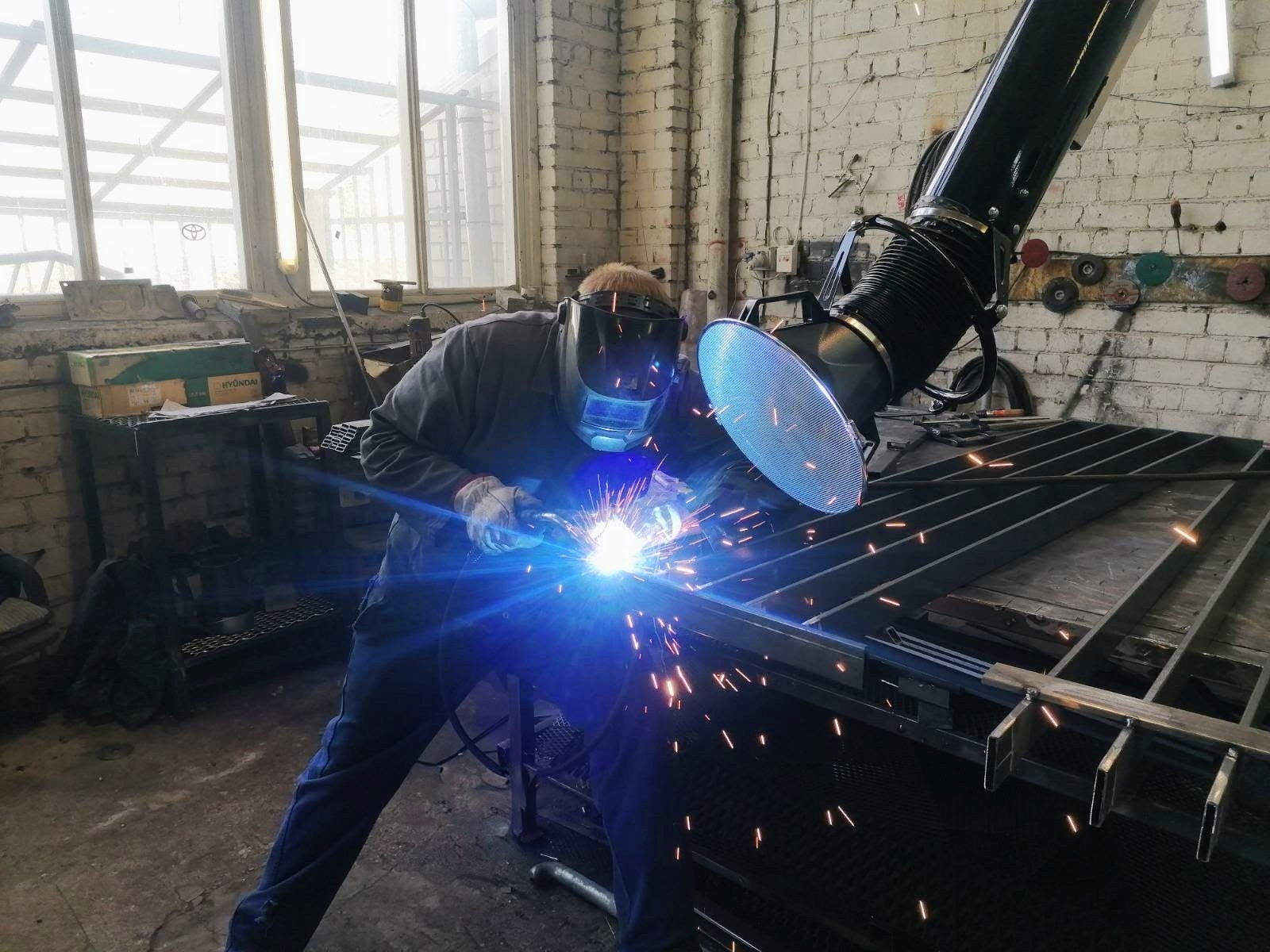 Metalinių turėklų, laiptų konstrukcijų ir kitų gaminių suvirinimas pagal techninius brėžinius gamybos patalpose Vilniuje.