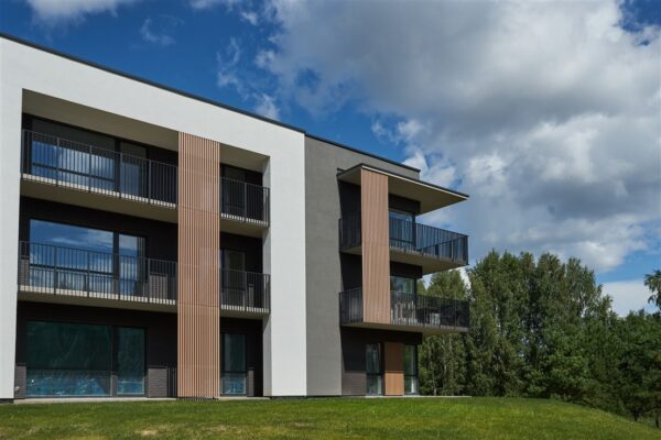 Daugiabučių metaliniai balkono turėklai. Objekte atlikome balkono turėklų ir fasado elementų iš kompozito gamybą ir montavimą. Turėklai pagaminti iš stačiakampių metalinių profilių. Panaudotas juodas plienas S235 klasės, po suvirinimo darbų turėklams atliktas karštas cinkavimas, kuris apsaugo juos nuo korozijos. Šis turėklų apdirbimo būdas prailgina turėklų apsaugą nuo rūdžių.