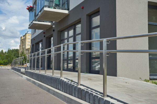 Daugiabučių panduso neįgaliųjų turėklas iš nerūdijančio plieno. Turėklas skirtas neįgaliesiems, jame panaudojome dvigubą nerūdijančio plieno porankį.