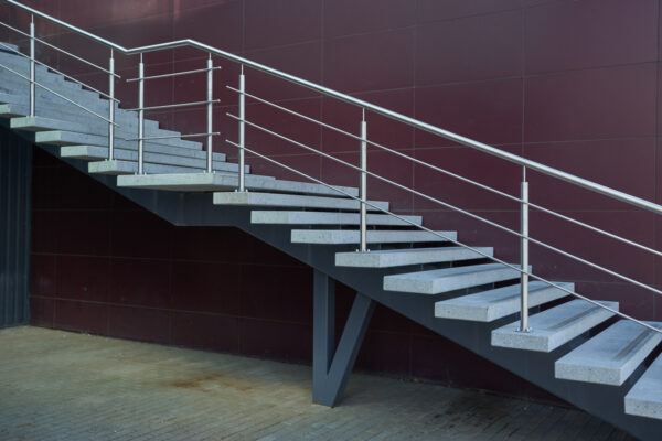 Lauko laiptų turėklas iš apvalaus nerūdijančio plieno. Konstrukciją tvirtinime iš viršaus, tvirtinimui panaudojome nerūdijančio plieno dekoratyvines veržles. Nerūdijančio plieno turėklus viriname TIG suvirinimo aparatais.