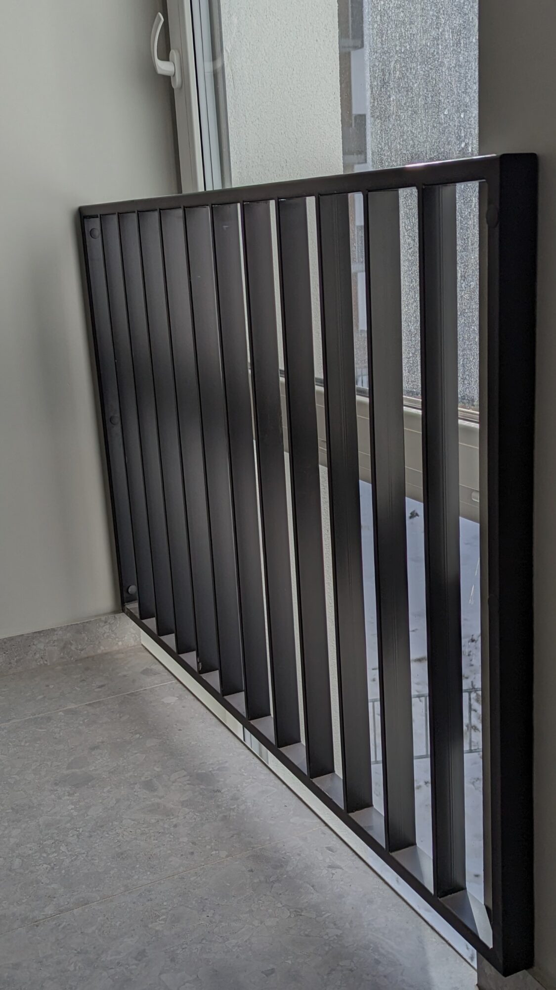 Vidaus laiptinės turėklas iš stačiakampių profilių. Šių turėklų išskirtinumas – uosio masyvo porankio matmuo. Porankis yra 40×30 mm skersmens, viršutinio metalo profilio matmuo yra 40×10 mm, taip išgaunama konstrukcijos simetrija.