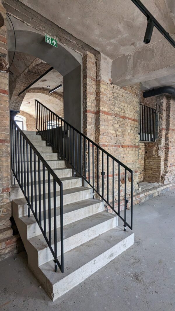 Vidaus laiptinės turėklai iš kvadratinių profilių. Šiame objekte naudojome 20×20 mm profilius turėklų užpildymui ir 40×20 mm profilį turėklų porankiui.