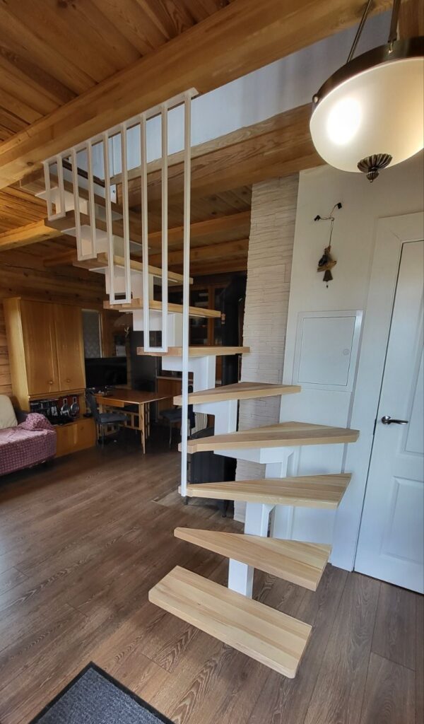Metalinė laiptų sija su padu. Sija pagaminta iš 100×100 milimetrų metalo profilio, ant kurio privirinamo su lazeriu išpjautus padus prie kurių sumontavimo uosio masyvo pakopas.