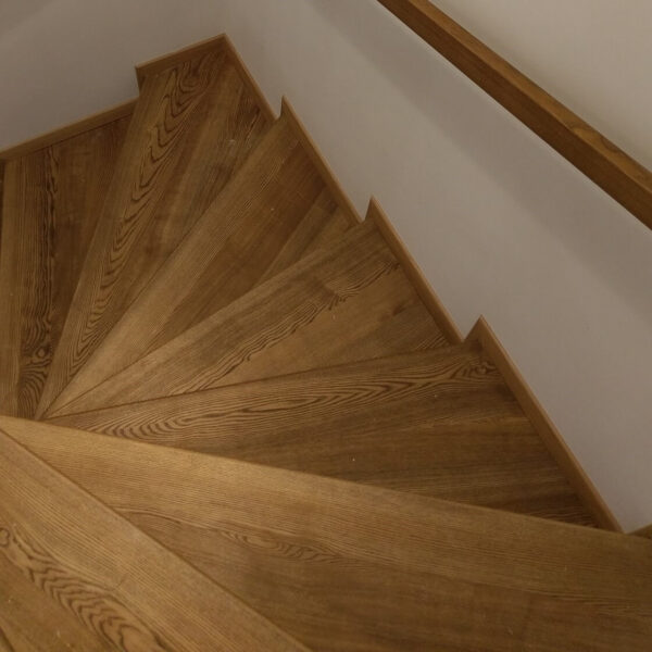 Medinės laiptų pakopos padengtos beicu ir laku. Toks laiptų padengimas yra ilgaamžis, jo nereikia atnaujinti. Atsparus lengviems nubraižymams.