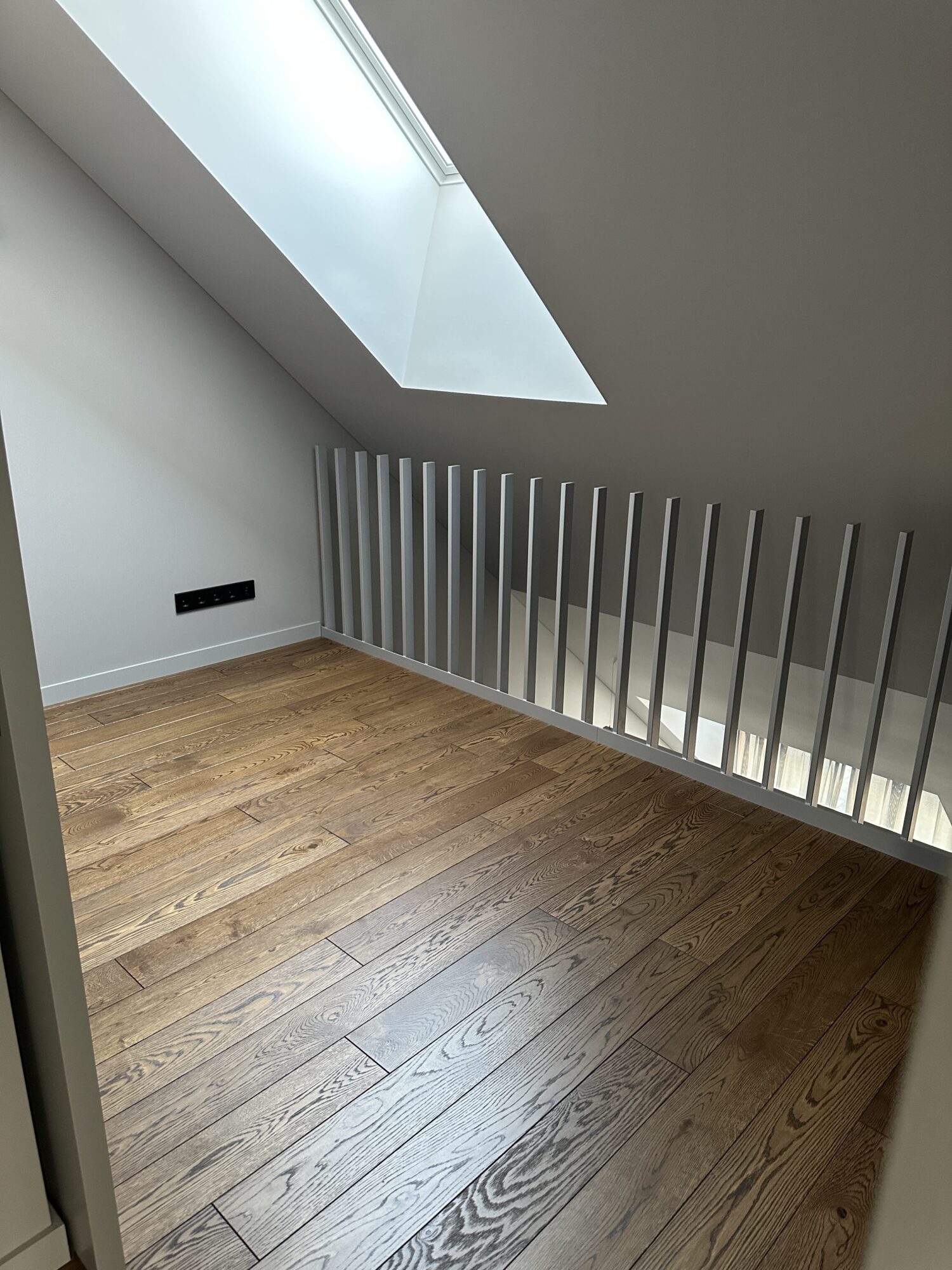 Vidaus turėklai iš metalo profilių. Turėklų konstrukcija pagaminti iš precizinių metalo profilių 50×20 mm, jie privirinti prie metalo lakšto. Metalo lakštą prisukome prie perdangos šono.