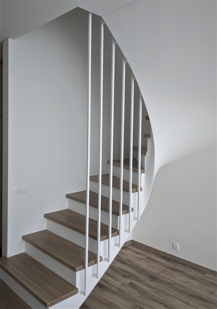Kvadratiniai turėklai iki lubų. Dažniausiai siūlome tokias turėklų detales, kai laiptų praėjimas yra siauras ir reikalingas šoninis tvirtinimas. Turėklų tvirtinimo vietos yra paslėptos