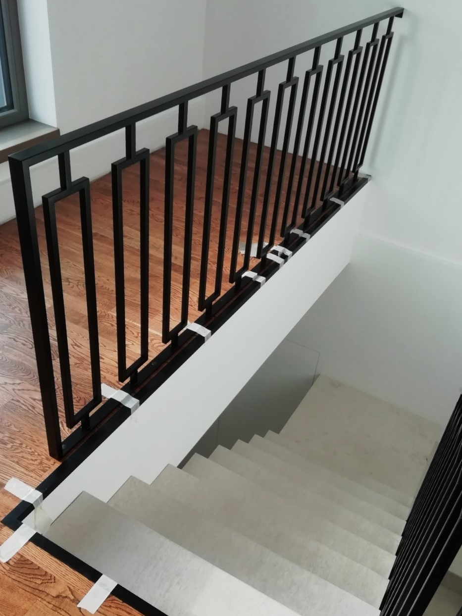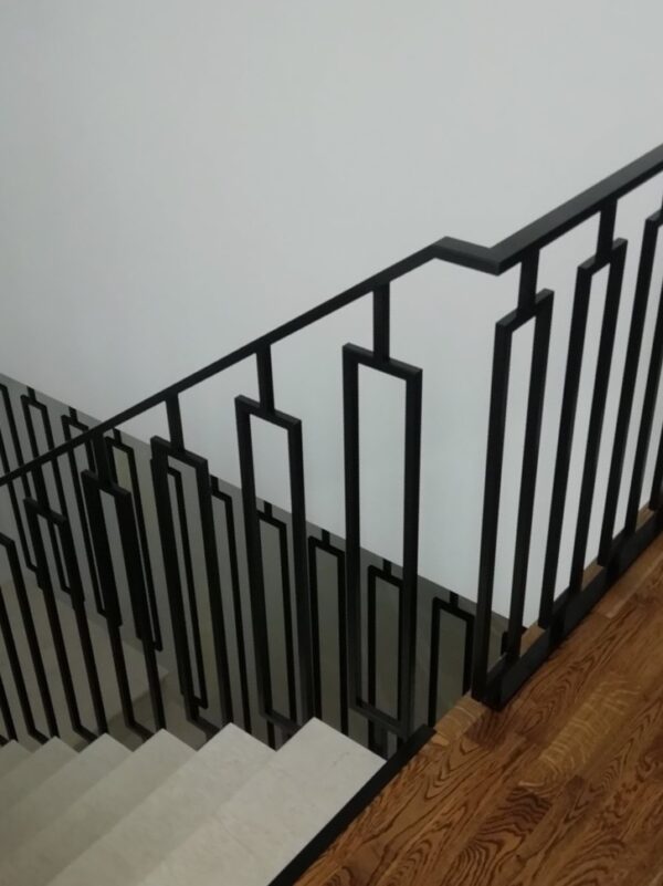 Graikiško stiliaus metaliniai turėklai. Tokio tipo projektuose naudojame precizinį ėsdintą plieną, viriname su TIG suvirinomo aparatu, todėl suvirinimo vietos atrodo preciziškai. Konstrukcija dažėme juoda matine spalva.