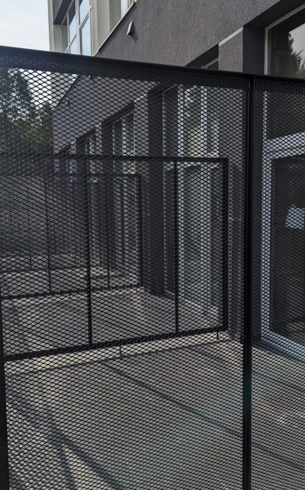 Pertvaros iš kirstai tempto tinklo. Metalinė konstrukcija pagaminta iš milteliniu būdu dažyto kampuočio. Į konstrukcijos vidų privirinome kirstai temptą tinklą.