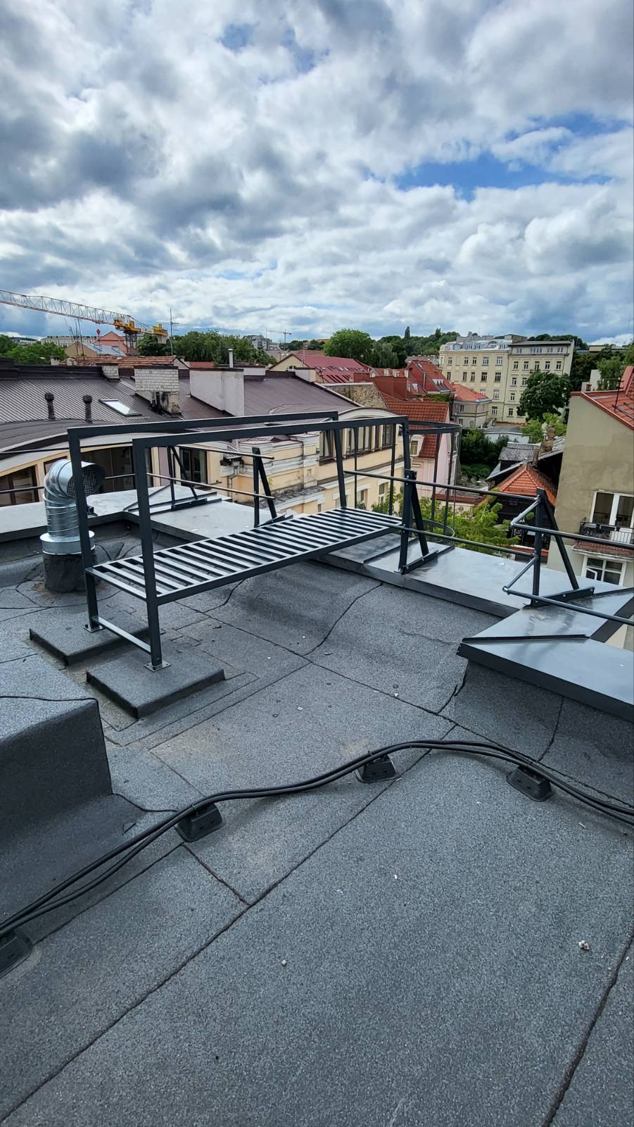 Lauko gaisrinės stogo kopėčios su žiedais. Galime pasiūlyti įvairių dydžių lauko kopėčias. Konstrukcijas milteliniu būdu dažome visomis spalvomis.