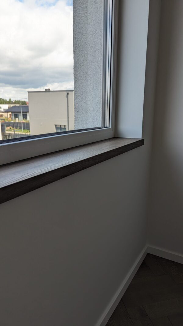 Ąžuolinė palangė, padengta laiptų pakopų spalva. Dažniausiai palangių spalva yra derinama prie grindų arba medinių pakopų. Labai atsakingai parenkame spalvą, ruošiame pavyzdžius. Gaminys gali būti beicuotas ir lakuotas arba padengtas alyva.